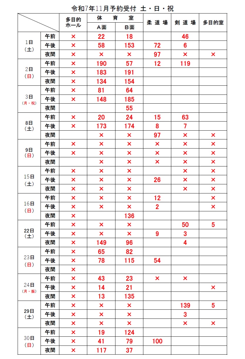 7月26日(土)に実施しました、令和7年11月分(土・日・祝日分)の抽選結果をお知らせ致します。