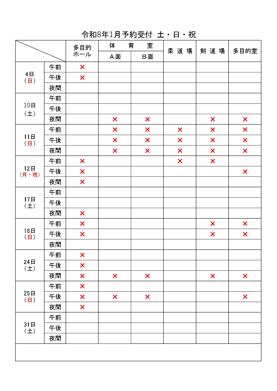 2026年1月度(土・日・祝日利用分)_施設予約抽選会 & 空き状況 のご案内