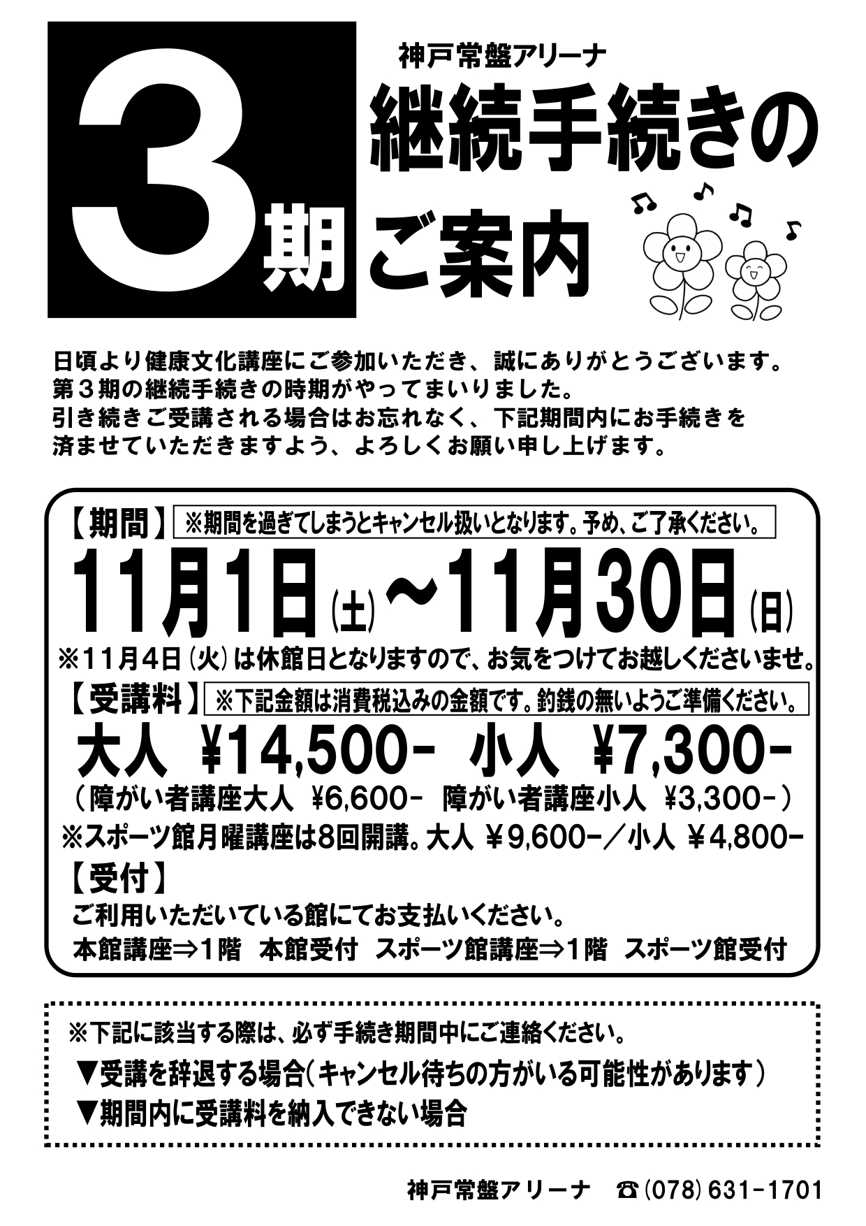 ※ 健康文化講座 第3期 講座手続きのお知らせ (10/23更新)※